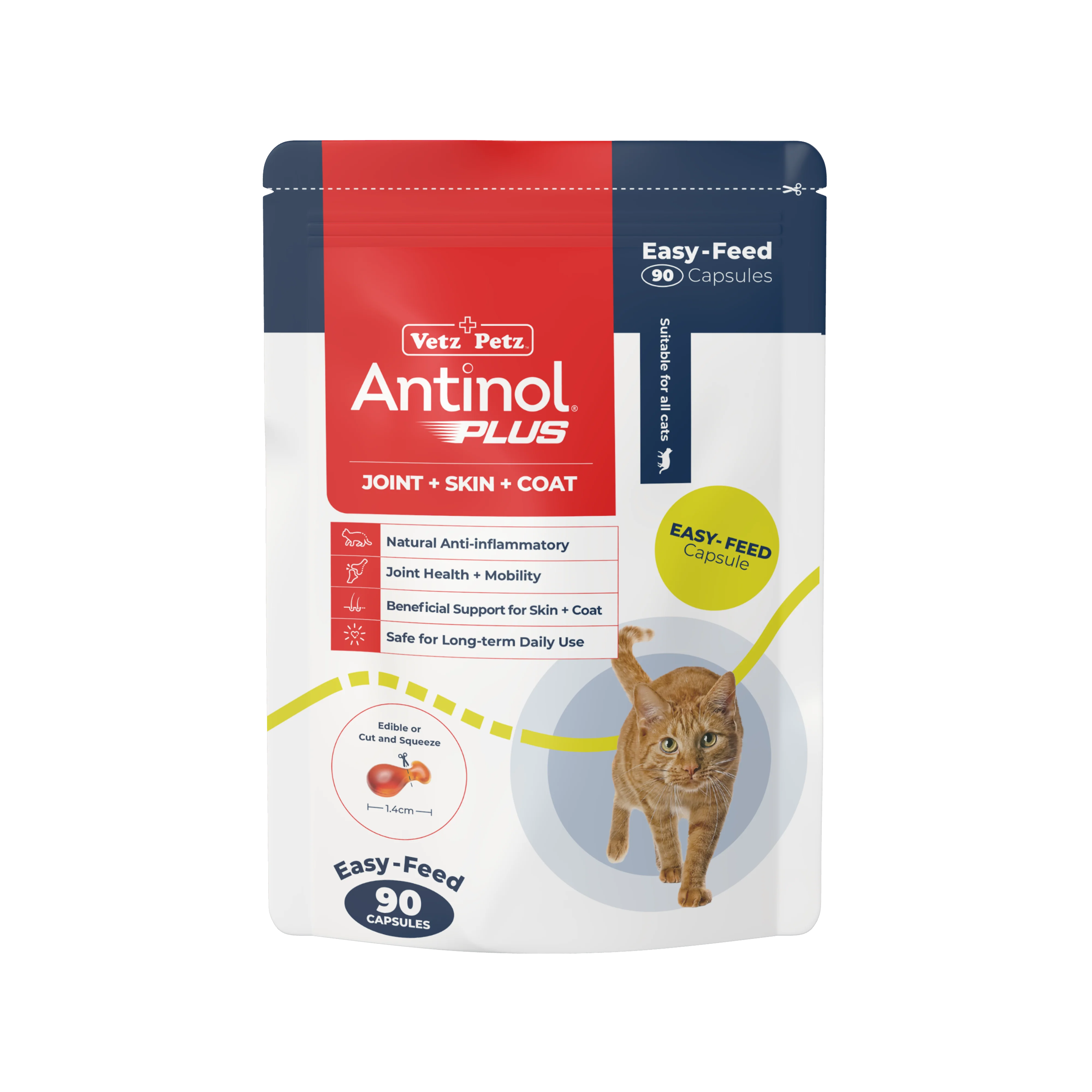 Antinol® is an all-natural supplement that is changing cats’ lives for the better. Clinically proven to support joint, skin, and coat health, each tiny capsule is made from a patented blend of marine lipid oils that are fully traceable, sustainably sourced and free from artificial preservatives and fillers. Antinol® can be used daily as a natural anti-inflammatory to help support joint and mobility health, help maintain skin and coat health, and as a wellness supplement for those being proactive about their cat’s health.